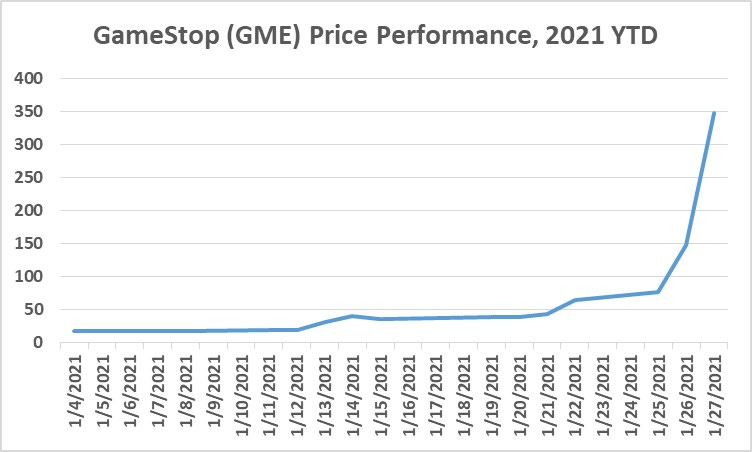 The recent movement in the price of this stock reflects a phenomenon I don’t recall seeing. There is apparently a social activist movement afoot to punish short-sellers of the stock, which includes some large, unpopular hedgefunds. Evidence of this is found in social media spots, such as the Wall Street Bets sub-Reddit.