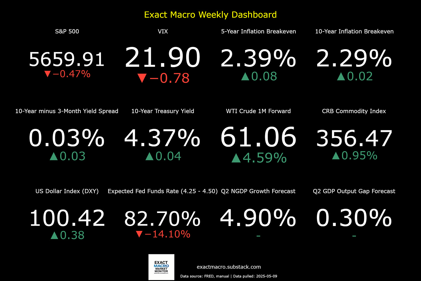 Stock prices and the mean expected NGDP growth rate fell last week, amid continuing tariff uncertainty, the cause of which is exemplied in the trade talks with the UK.